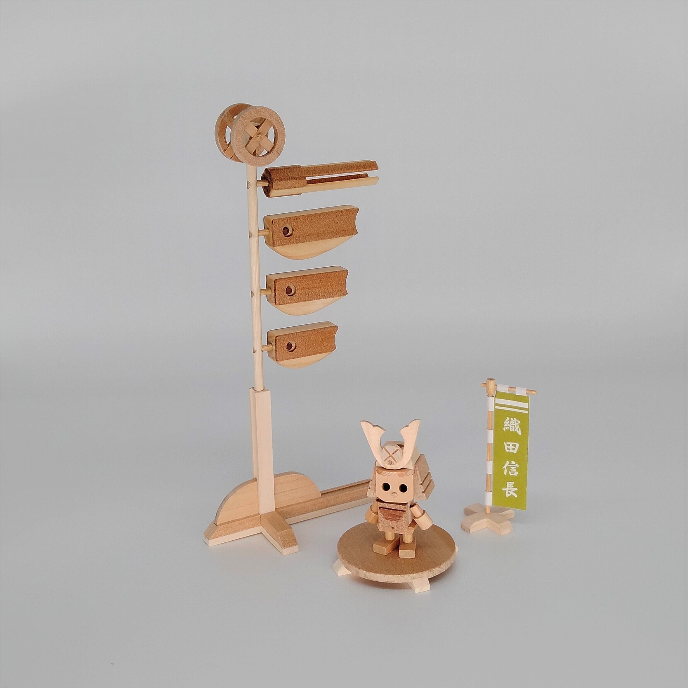 「小さな鯉のぼり 織田信長」は木製の鯉のぼりにミニロボ「織田信長」を付けた商品です。