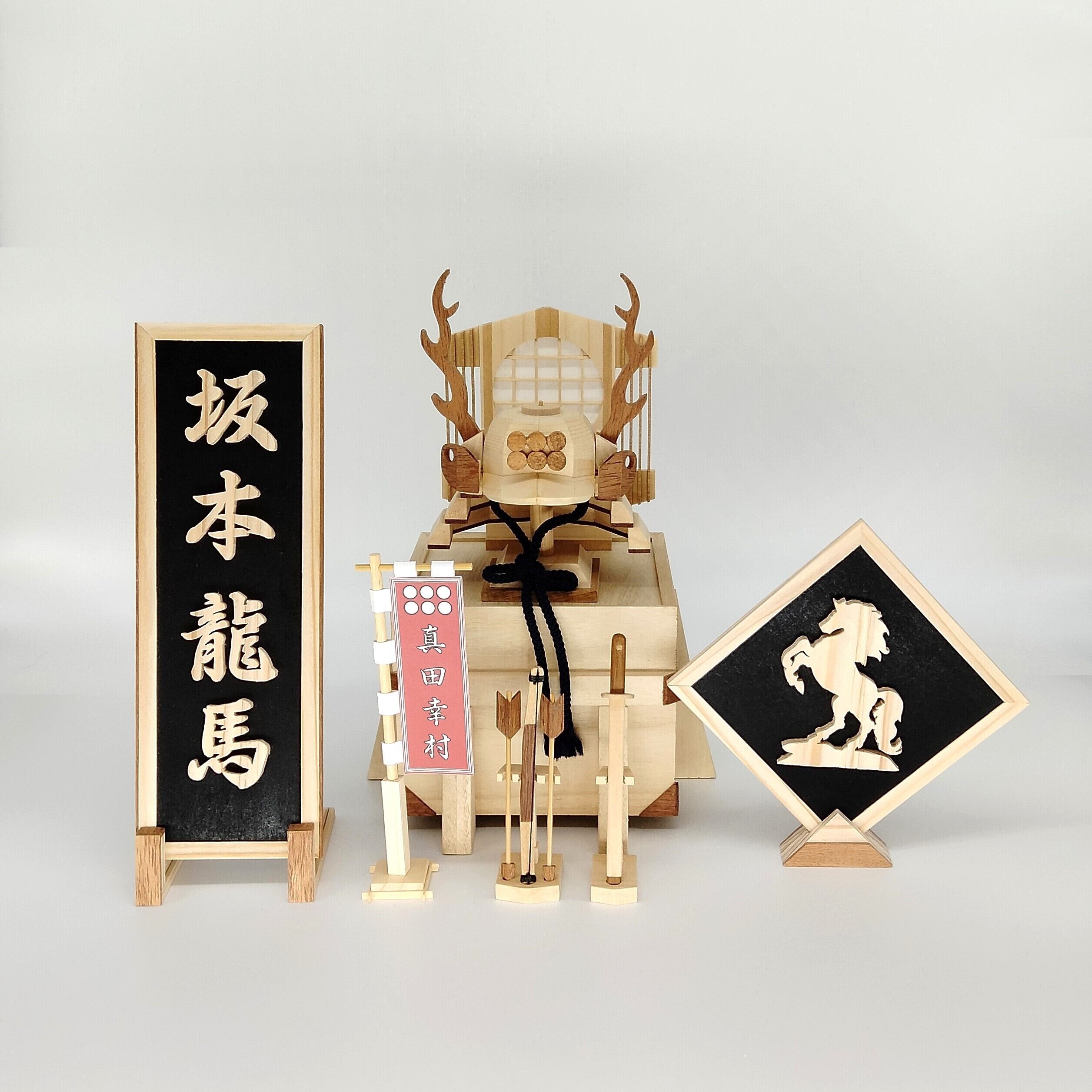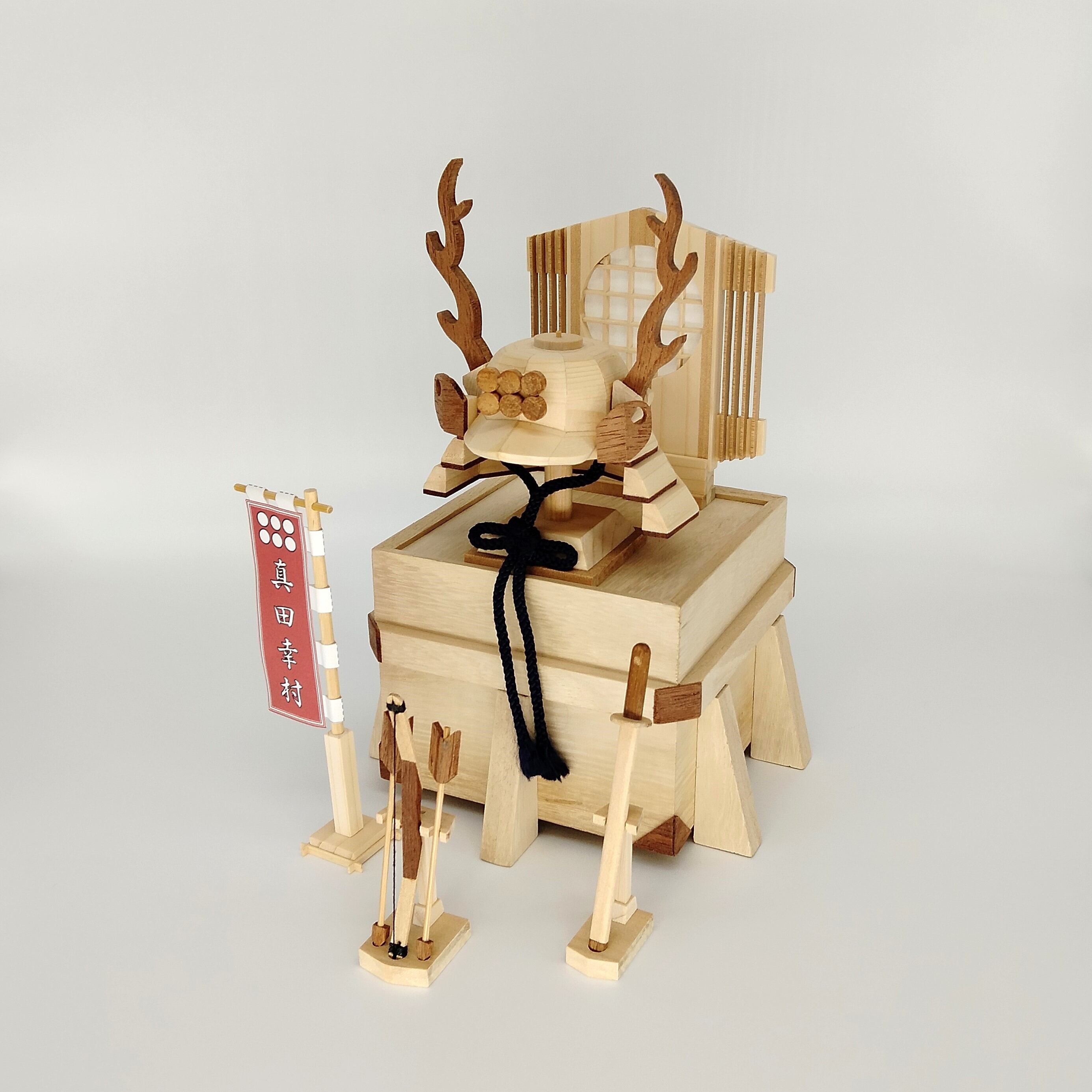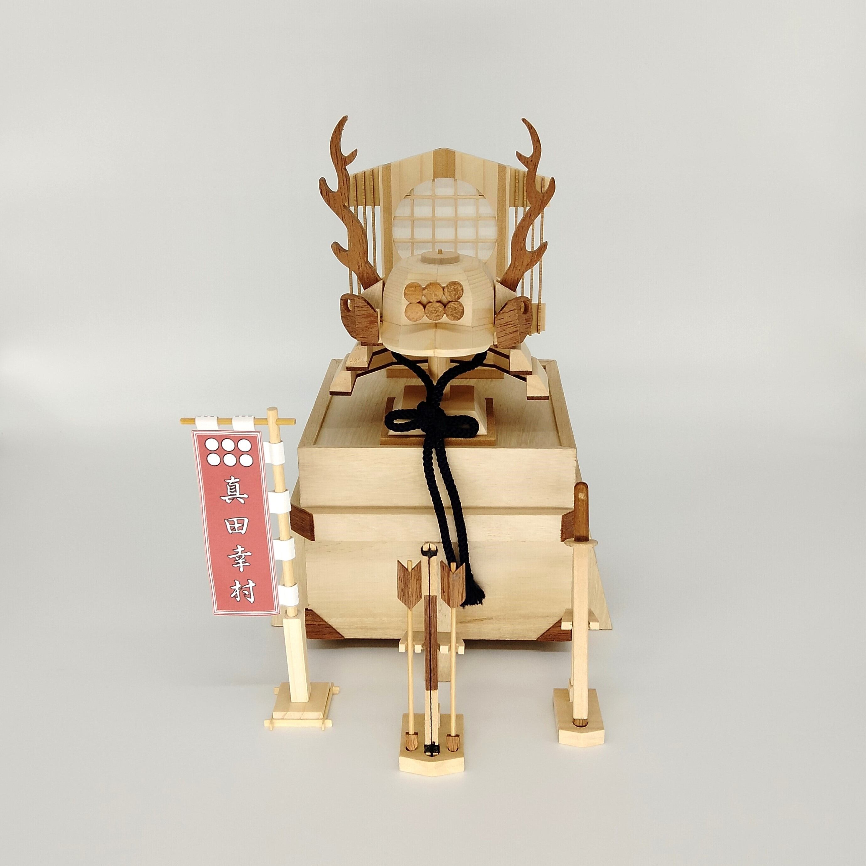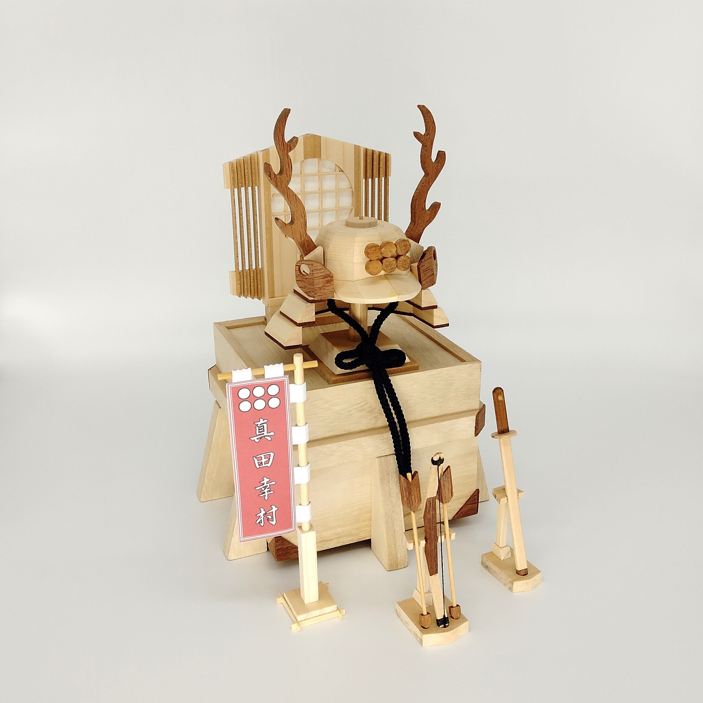 木製 兜 「 真田幸村」は、木で兜をあしらいコンパクトに仕上げた商品です。