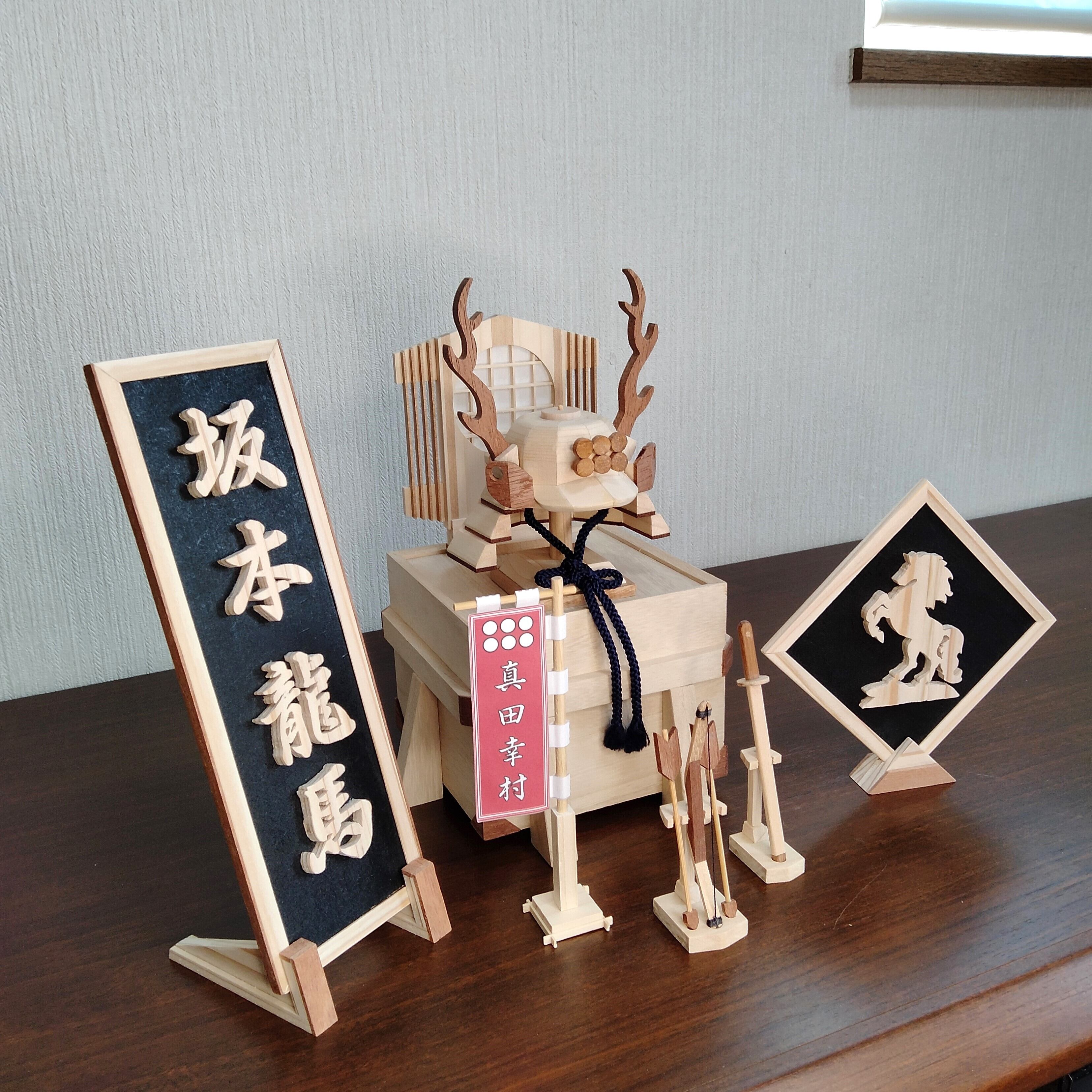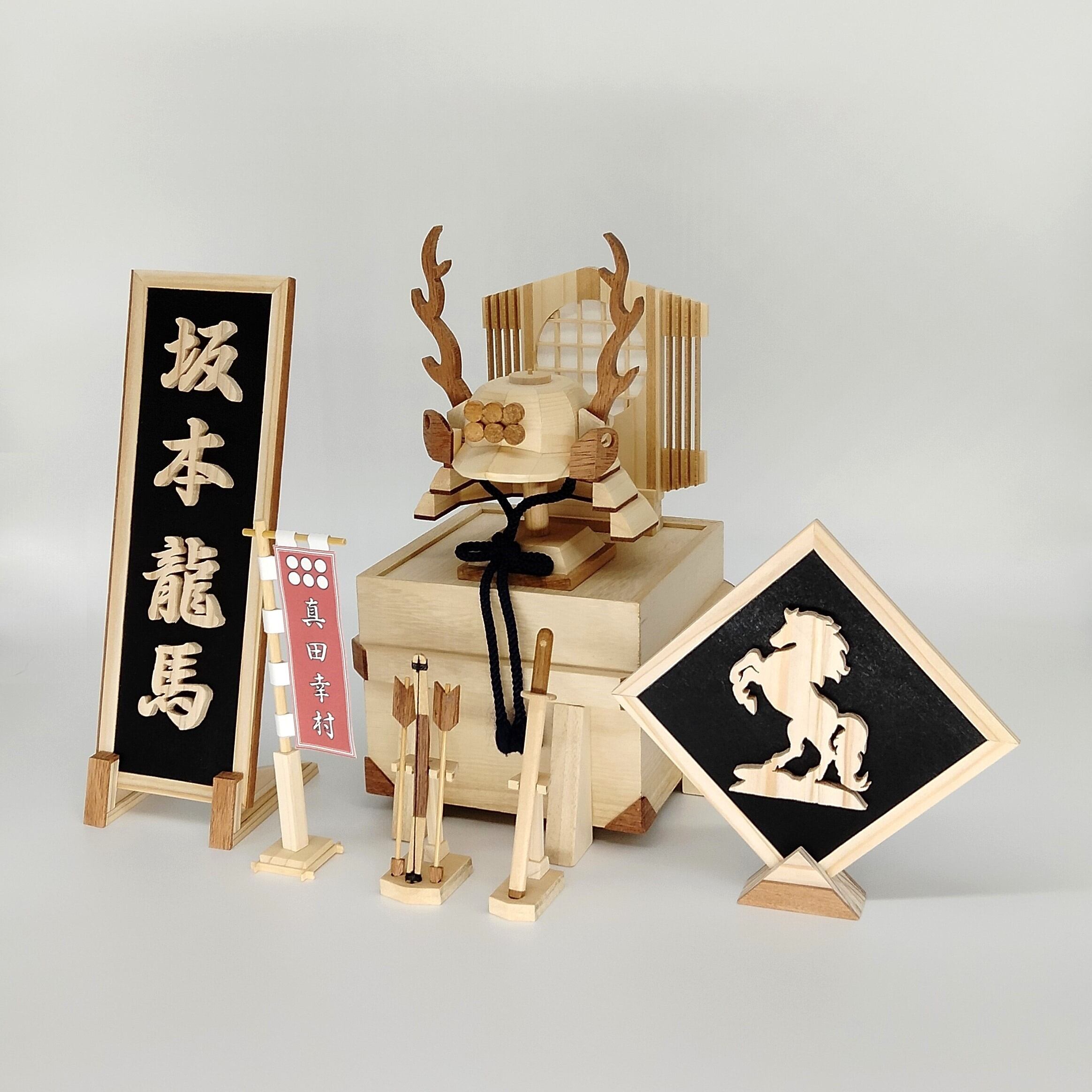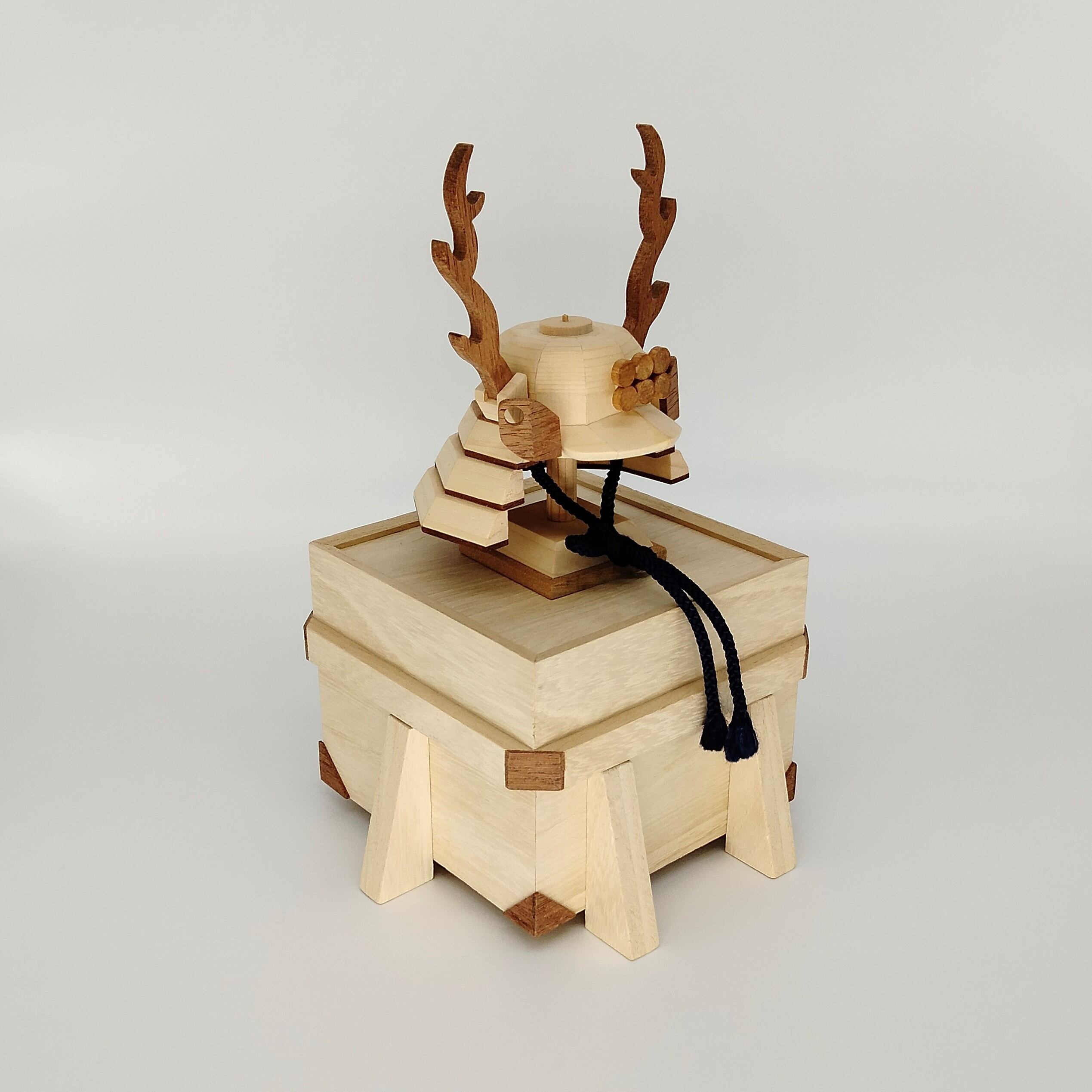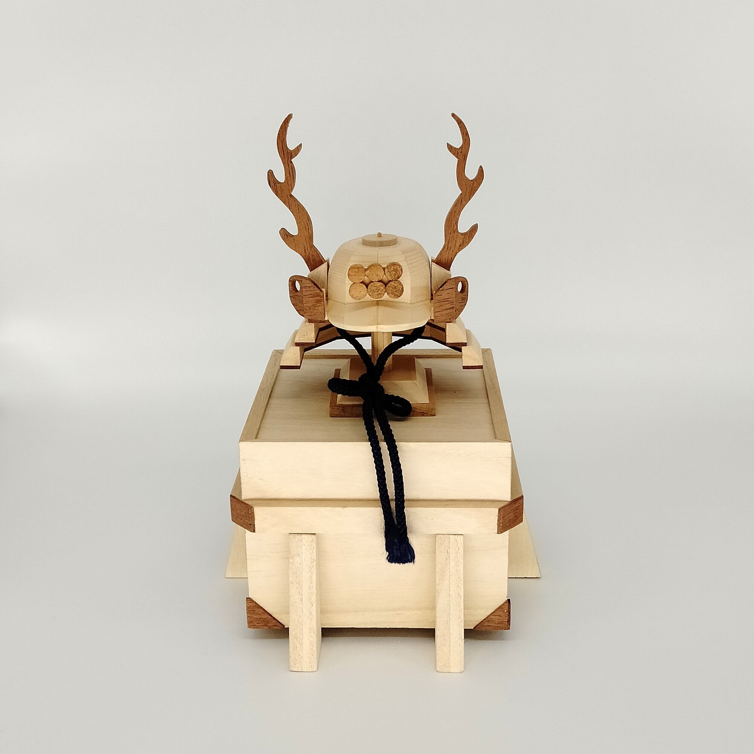 木製 兜 「 真田幸村」は、木で兜をあしらいコンパクトに仕上げた商品です。