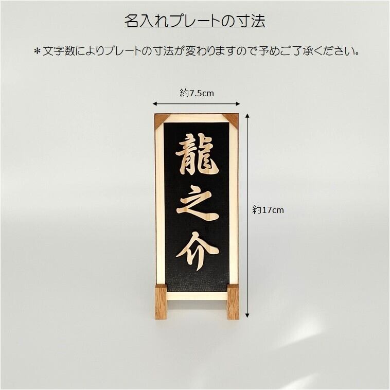 メッセージにて、氏名(フルネーム)かお名前(ファーストネーム)をお送りください。(文字数によりプレート寸法が変わりますので予めご了承ください。)
