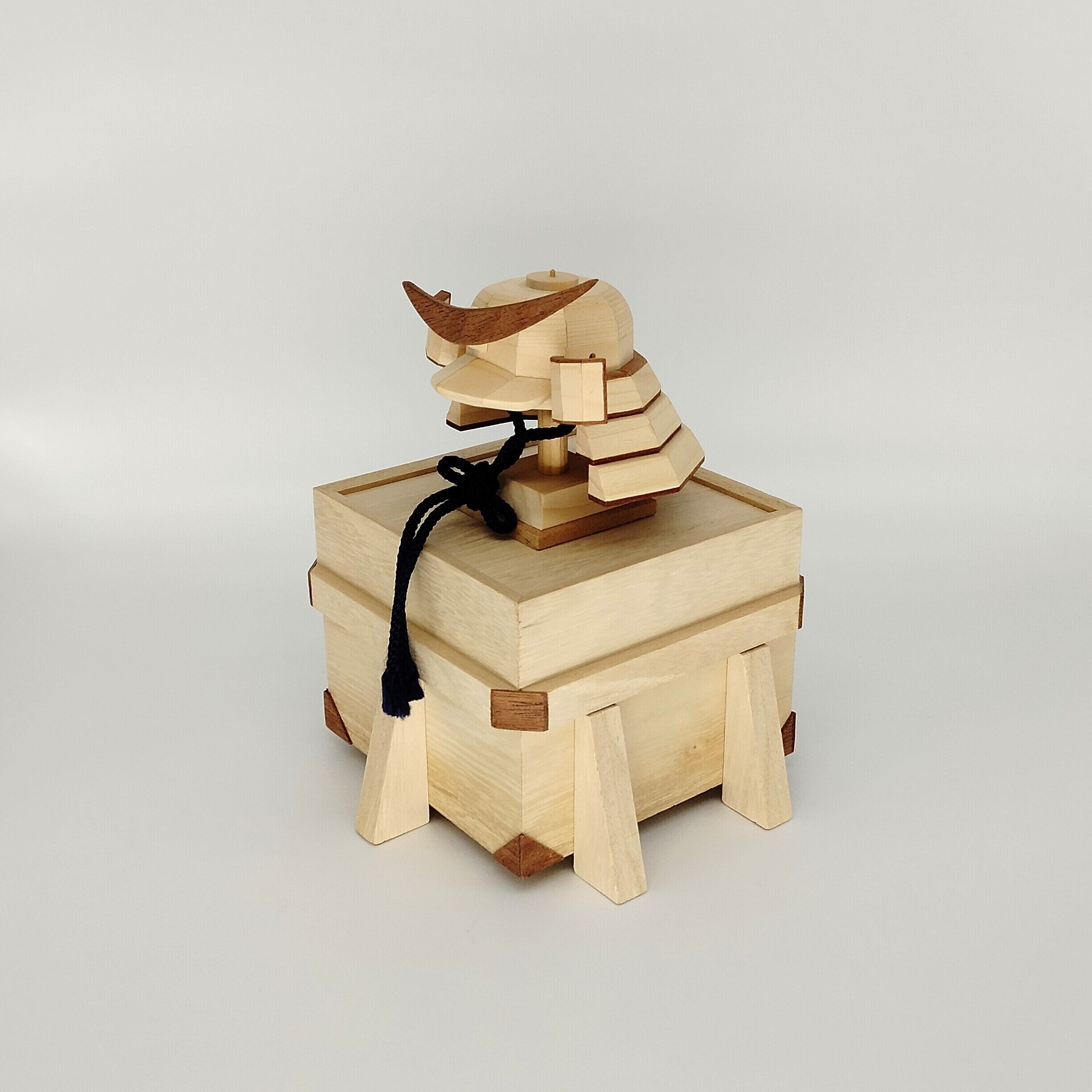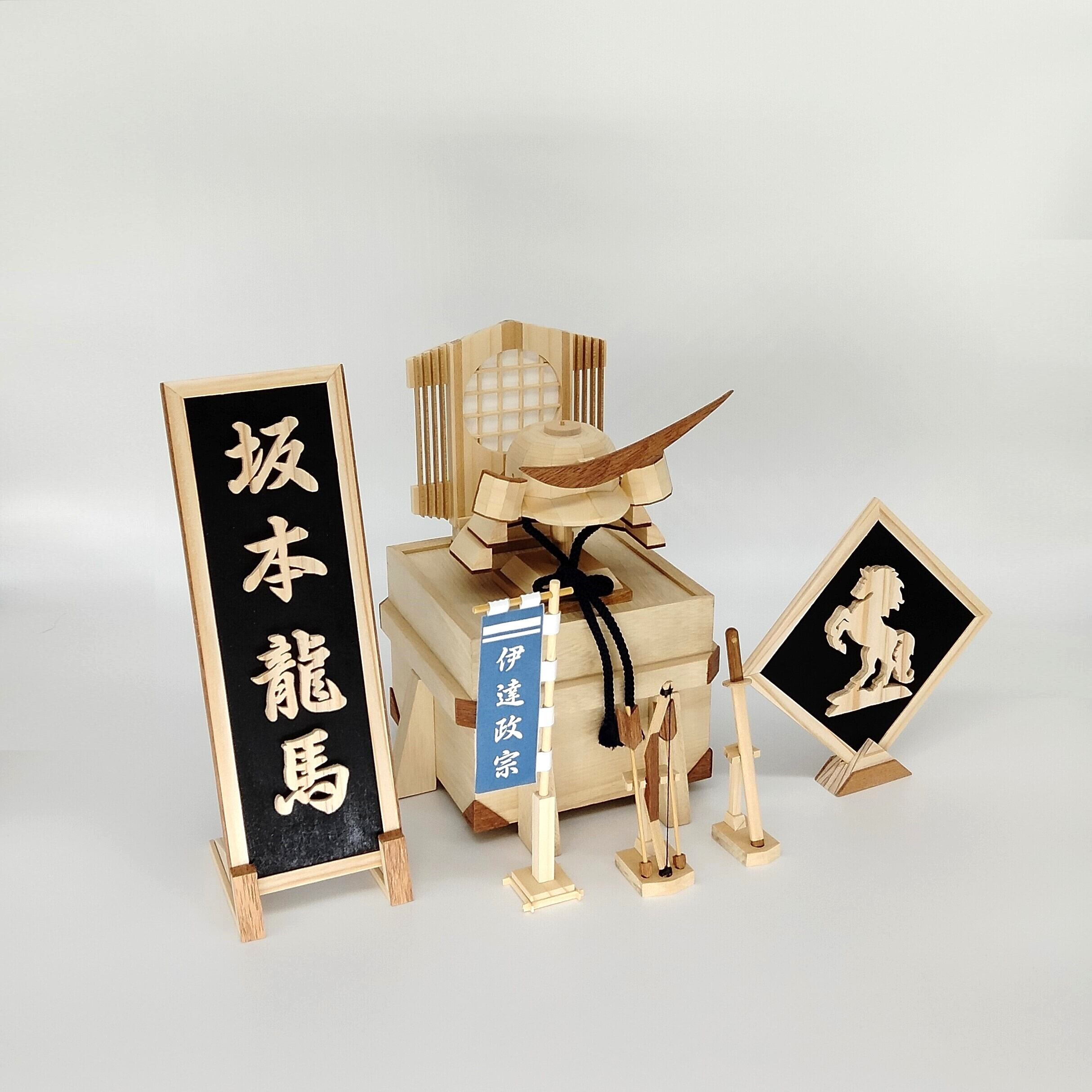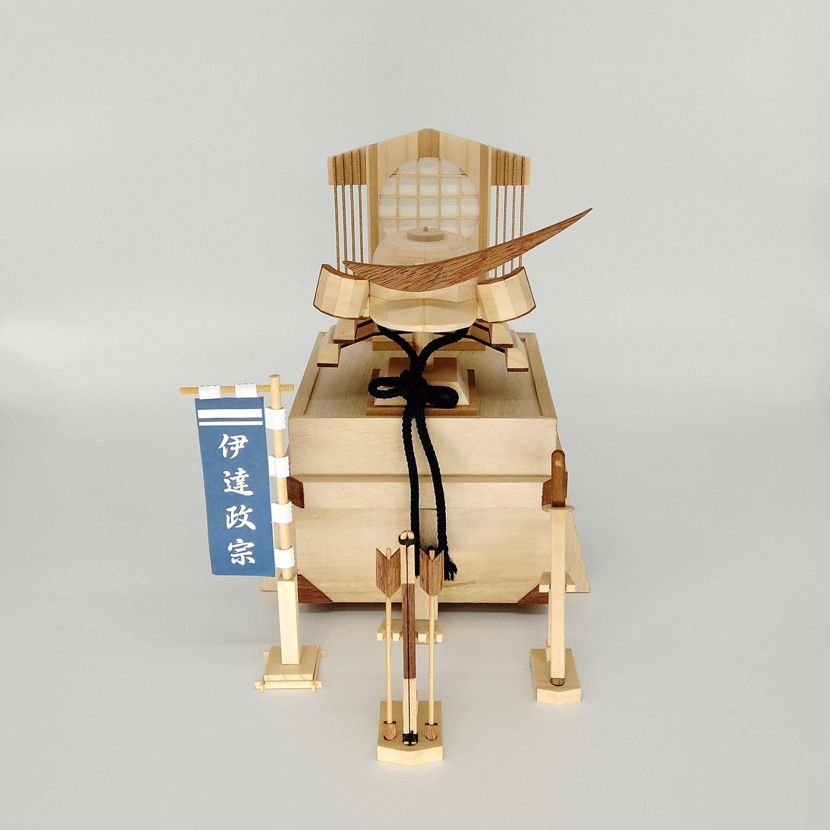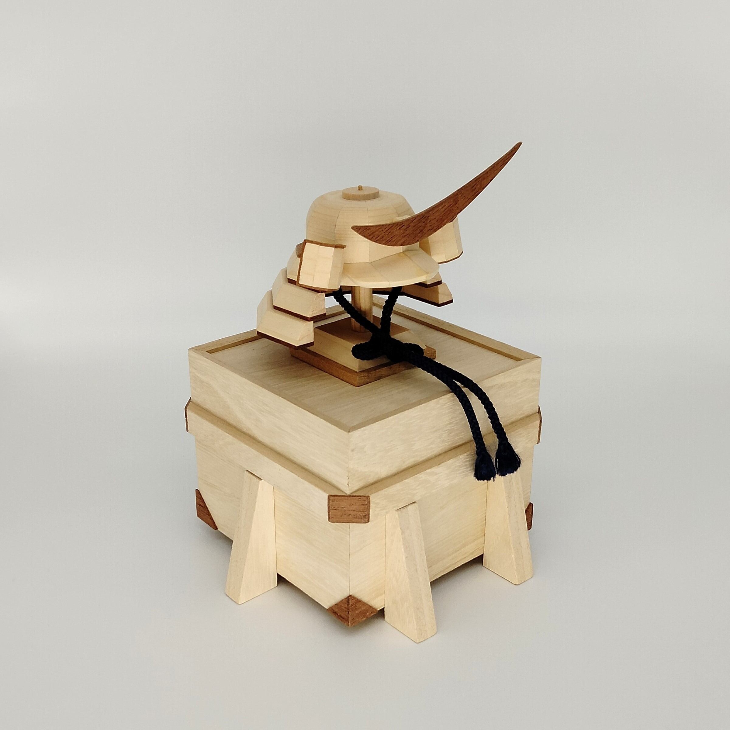 木製 兜 「 伊達政宗」は、木で兜をあしらいコンパクトに仕上げた商品です。