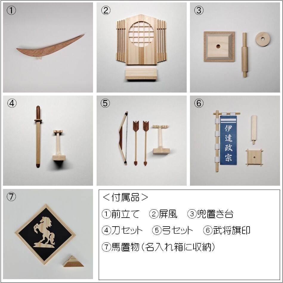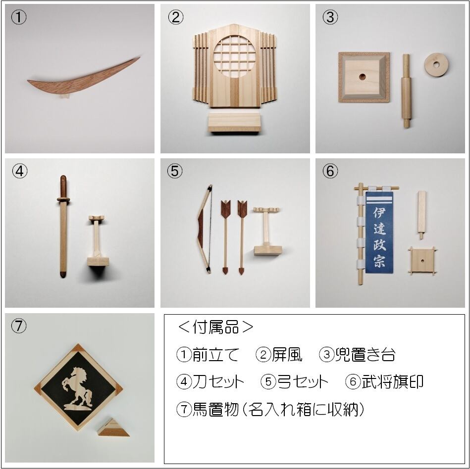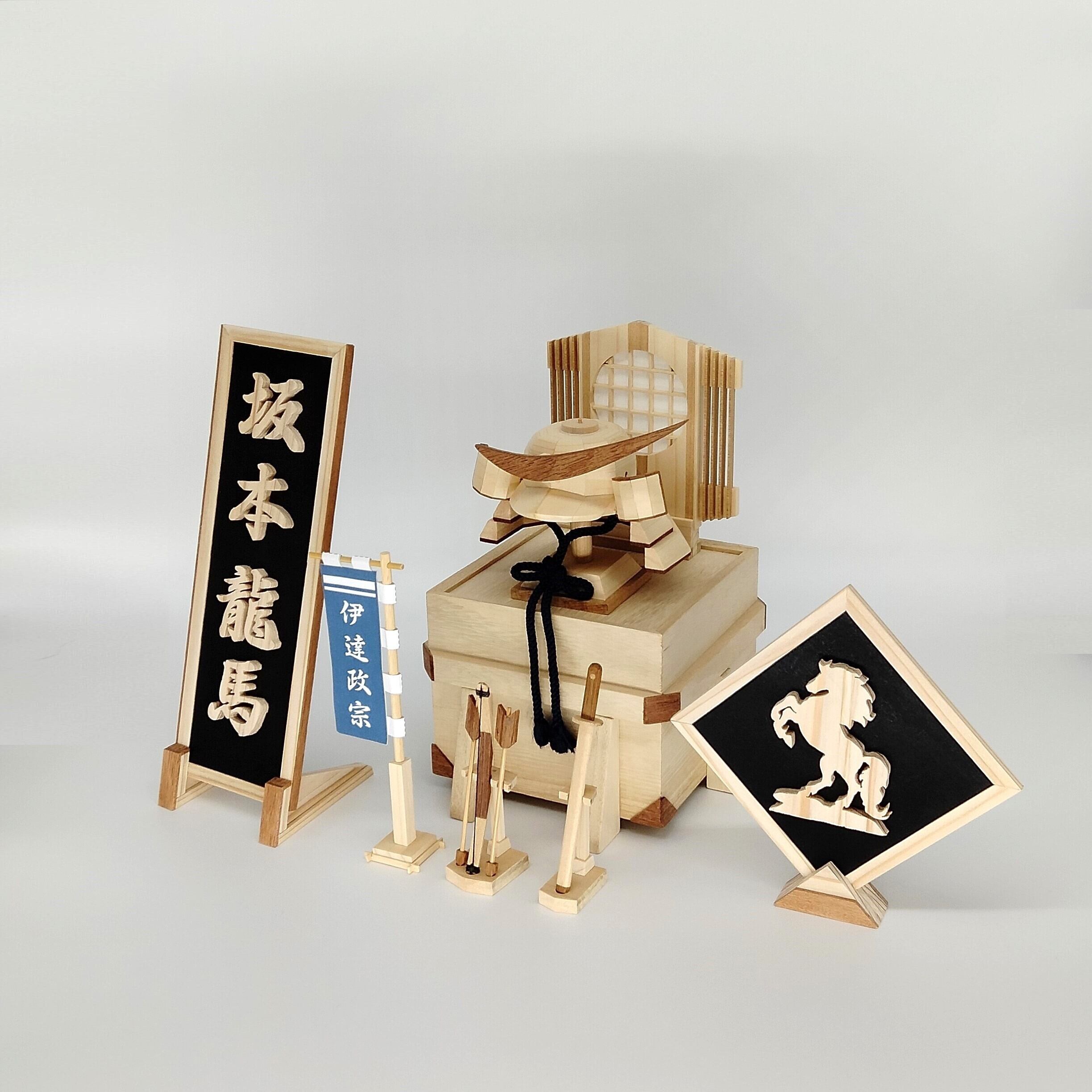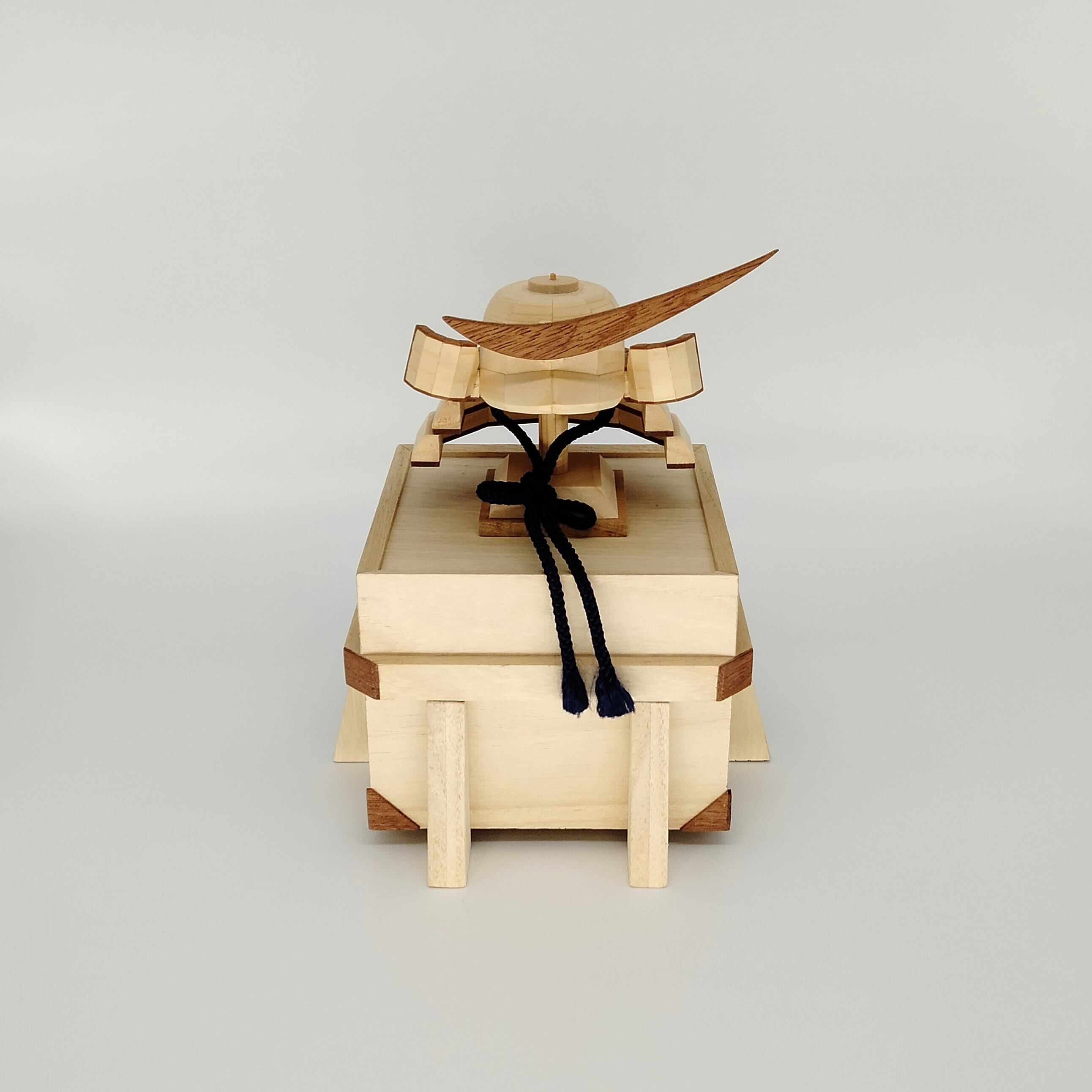 木製 兜 「 伊達政宗」は、木で兜をあしらいコンパクトに仕上げた商品です。