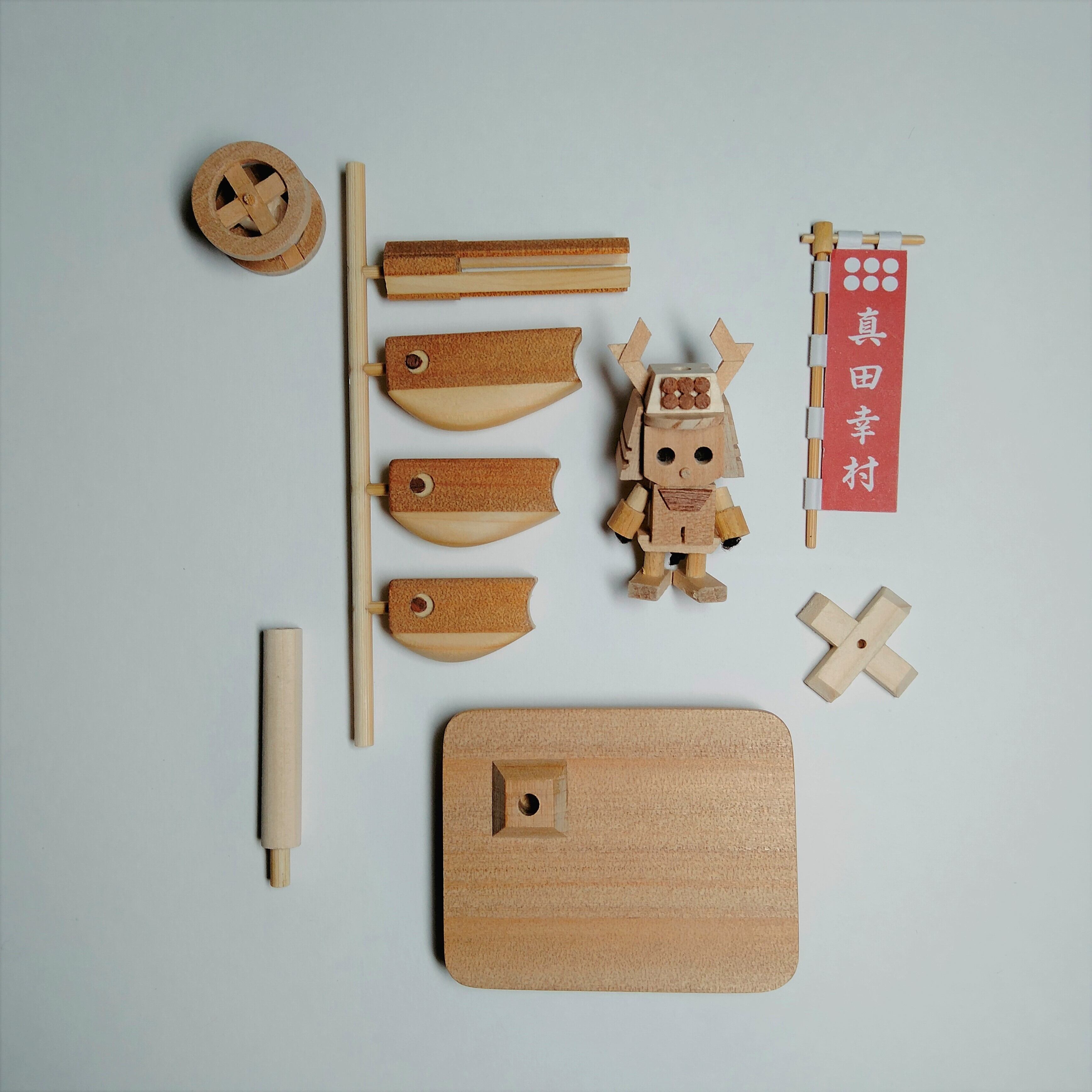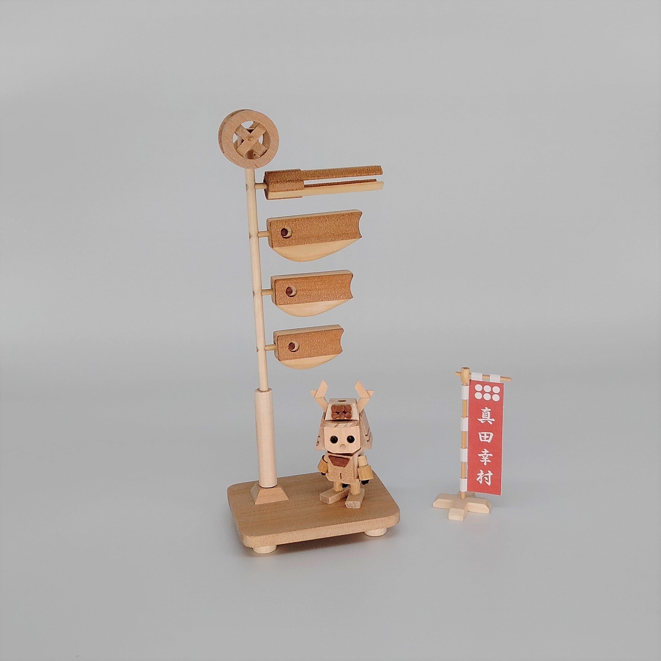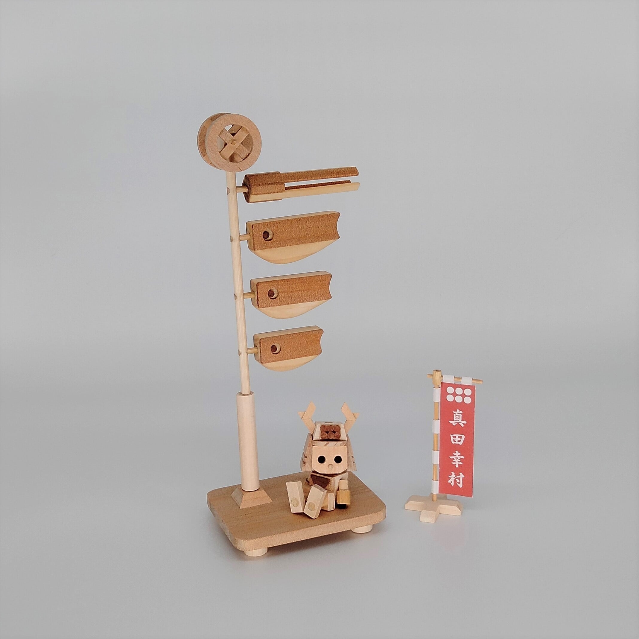 「小さな鯉のぼり 真田幸村」は木製の鯉のぼりに「ミニロボ 真田幸村」を付けた商品です。