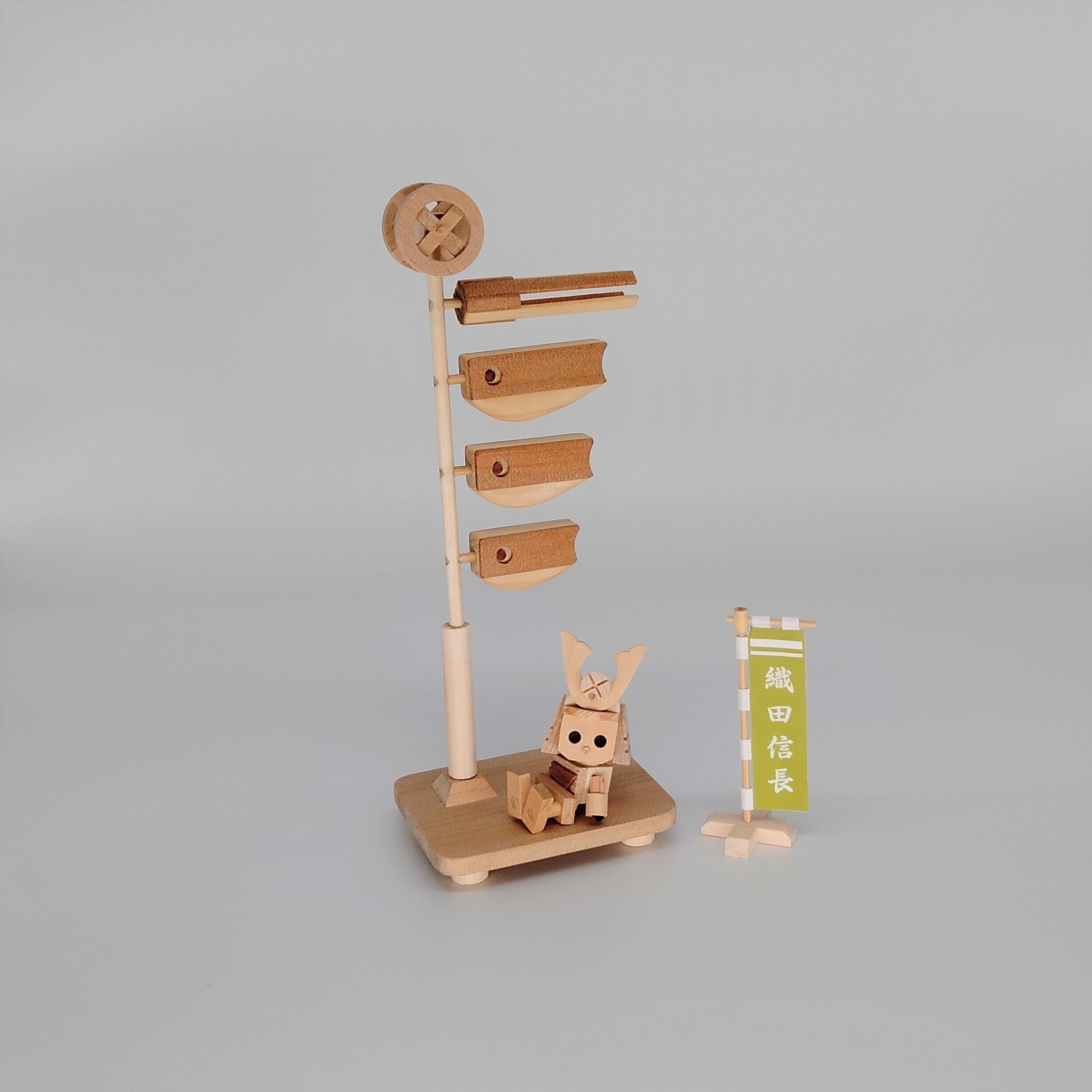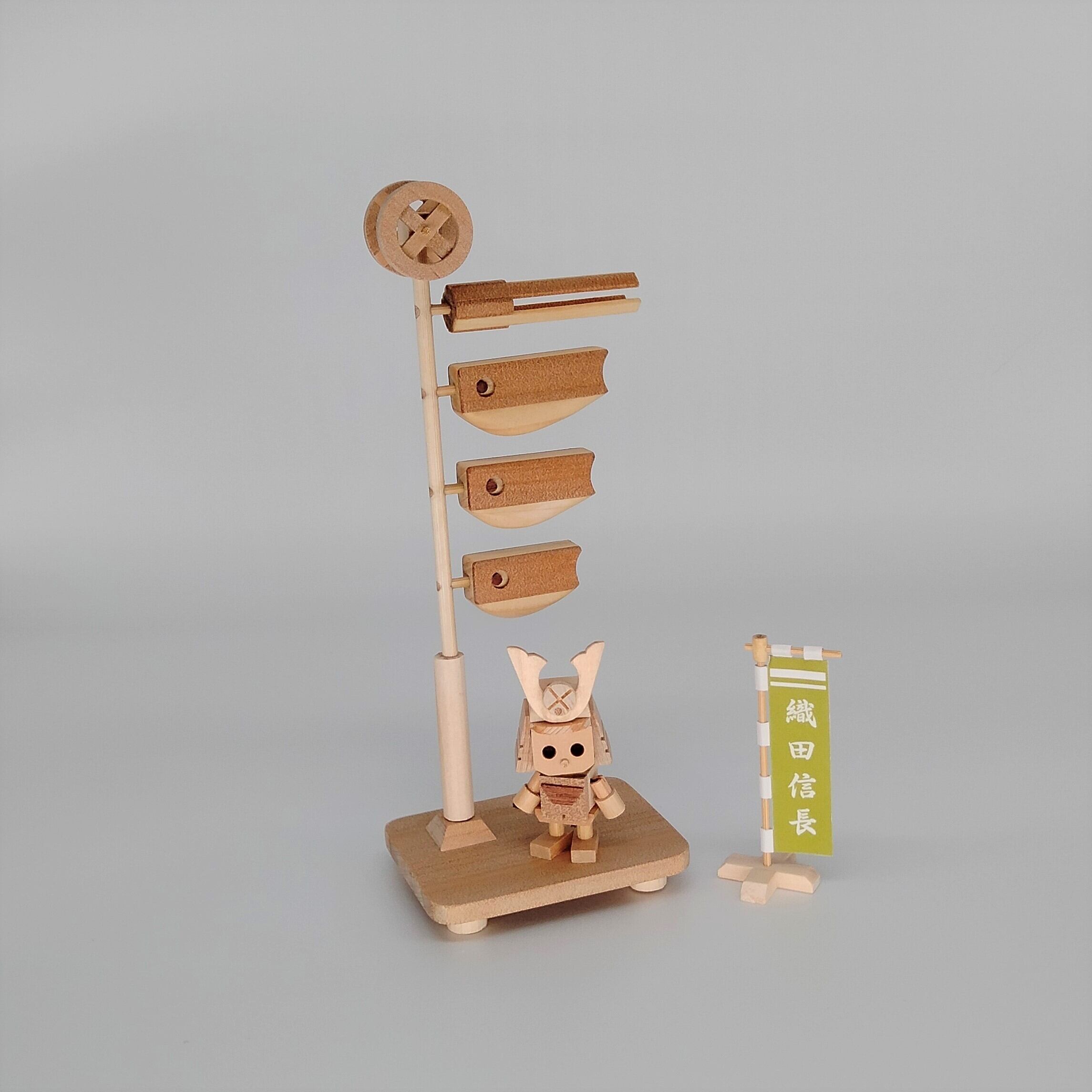 「小さな鯉のぼり 織田信長」は木製の鯉のぼりに「ミニロボ 織田信長」を付けた商品です。